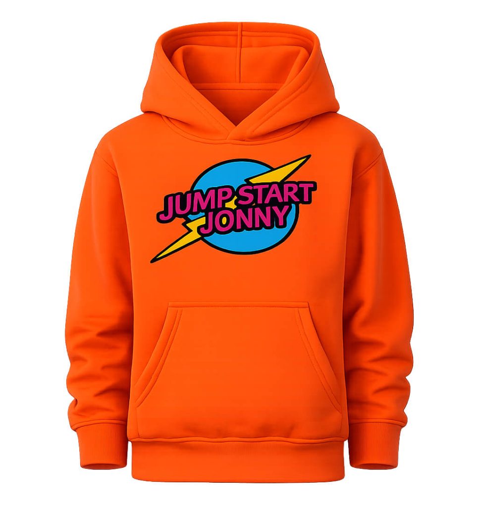 Jump Start Jonny Shop Shop official Jump Start Jonny merchandise on this website. WHOOOPA! Kid’s T-Shirt — £16 Kids Hoodie — £29 Adult T-Shirt — £19 JSJ Bath Towel — £14 Cap — £14 Drawstring Bag — £12 Personalised Video — £40 Personalised Signed Poster — £8