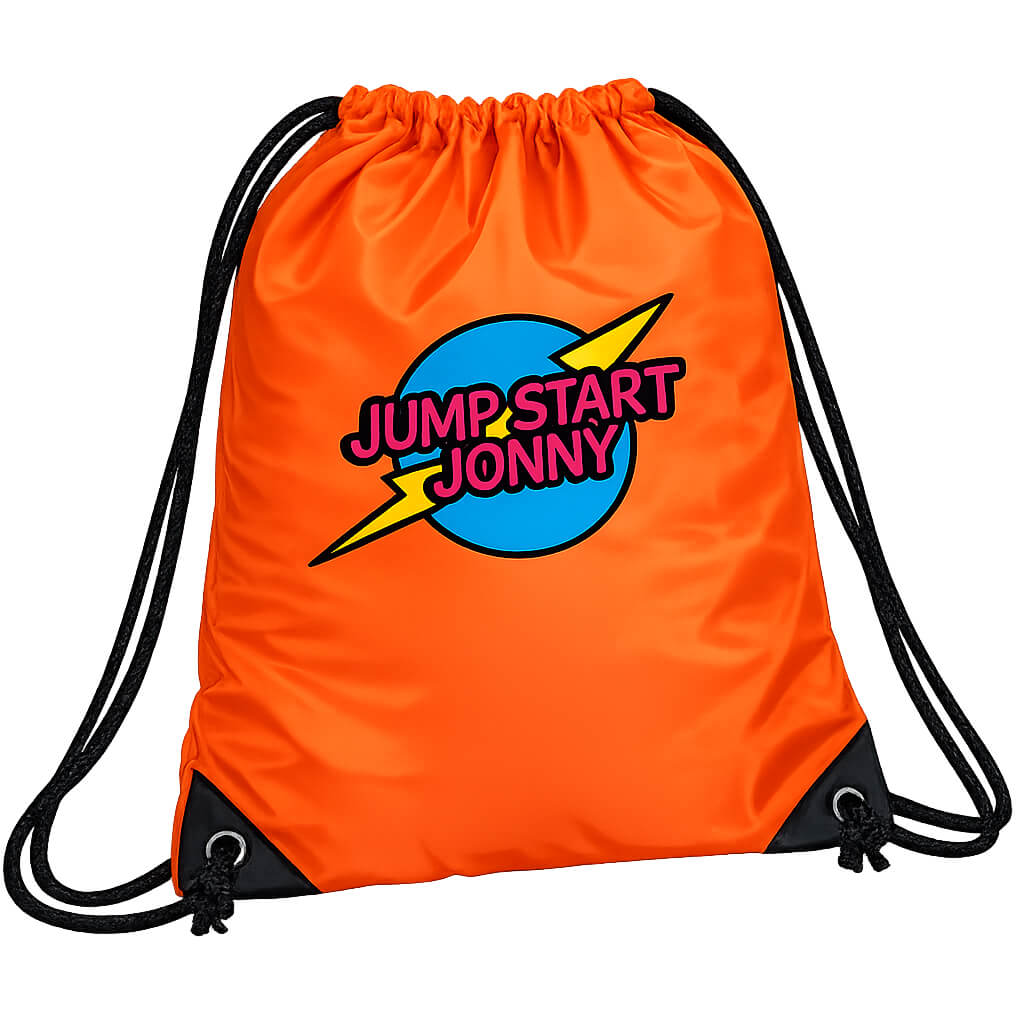 Keep your stuff safe and your style on point with the official Jump Start Jonny Drawstring Bag! It’s the perfect size for school kits, dance clothes, snacks, or anything else you need for a day full of fun and adventure. Lightweight, easy to carry, and bursting with WHOOOPA energy, this bag is ready to go wherever YOU go!